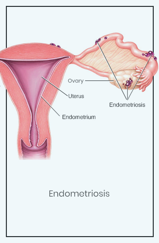 Endometriosis is a diseased condition, where in the uterine lining (endometrium), is found outside the uterus. Can be found in the tummy, fallopian tube, ovary, inside the muscle layer of the uterus (Adenomyosis), bowel ( pipeline for stools), urinary bladder and ureter ( bag and pipeline for urine), rarely lungs, diaphragm etc. It is estimated to affect 25 million women in India.